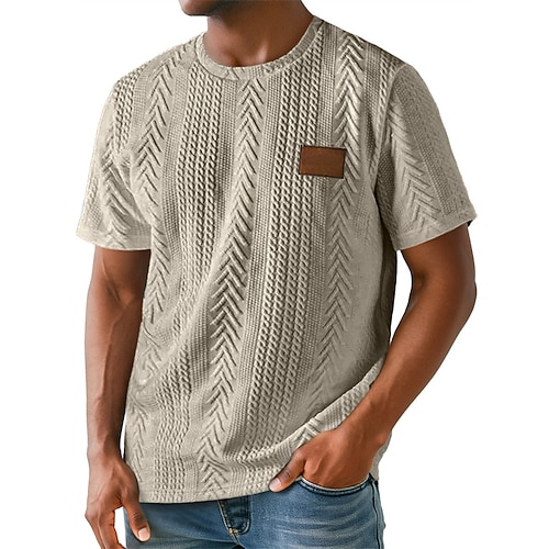 Herren Waffelstrick T-Shirt T-Shirt Kurzarm Rundhalsausschnitt Sommer Farbblock Mode Designer Bequem Fronttasche Outdoor Lässig Täglich Schwarz Weiß Braun Top T-Shirt für Herren
