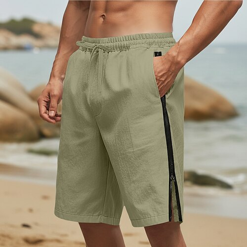 Per uomo Shorts Shorts di Lino Pantaloncini Estivi Shorts da Spiaggia Coulisse Tasca Elastico in vita Semplice Comodità Traspirante Corto All'aperto Quotidiano Corsa Vacanza Moda Bianco Verde