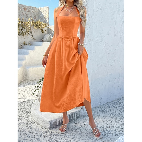 Per donna Abito Midi Abito Bianco Abito da Spiaggia Abito con Collo Allacciato Elegante Moda Moderno All'aperto Vacanza Uscire Vestibilità regolare Semplice Senza Maniche All'americana Blu Nero
