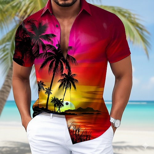 Per uomo Albero di cocco Colore sfumato Piante tropicali Camicia hawaiana Camicia con bottoni Manica corta Hawaiano Ricorrere Da mare Per eventi Abbigliamento mare Estate Primavera Collo ripiegabile