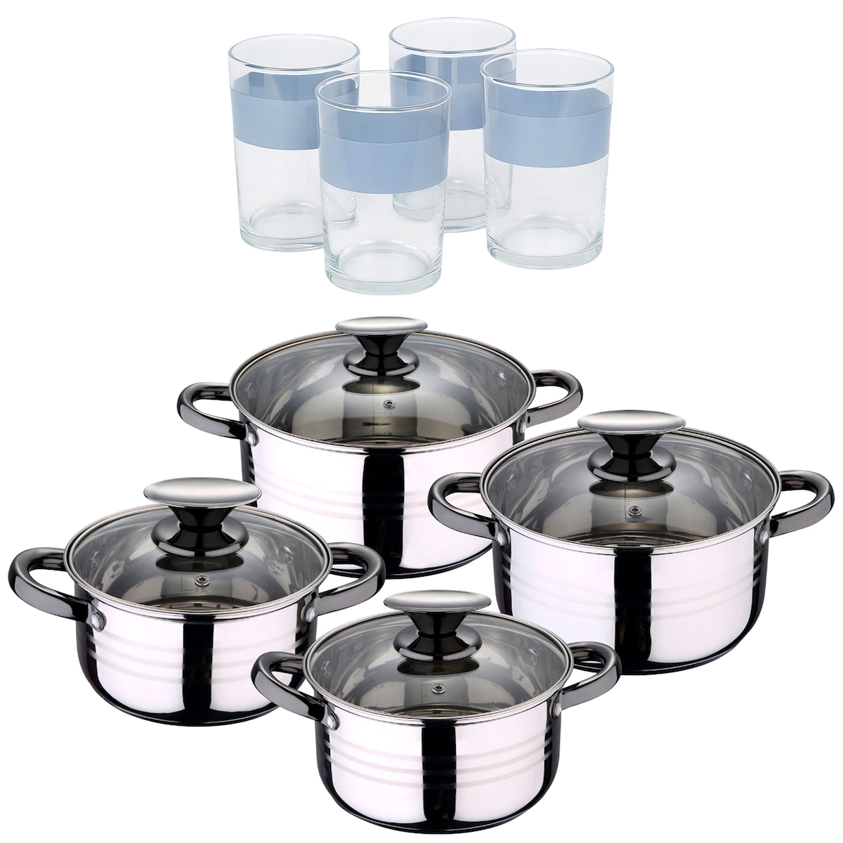GARESA Gardinenstange "Nora" 2 läufig-läufig Wunschmasslänge Vorhanggarnitur, einfache Montage an die Wand, verlängerbar, Kappe schwarz B/L: 430cm, 2 läufig