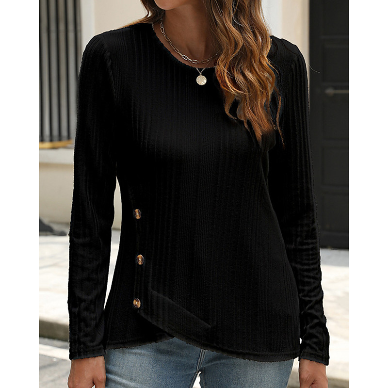 Women's Texture Blouse T Shirt Tee Top Plain Fashion Modern Long Sleeve Crew Neck Regular Tops Daily Going out Buttons Black White Pink Blue Orange Spring Fall