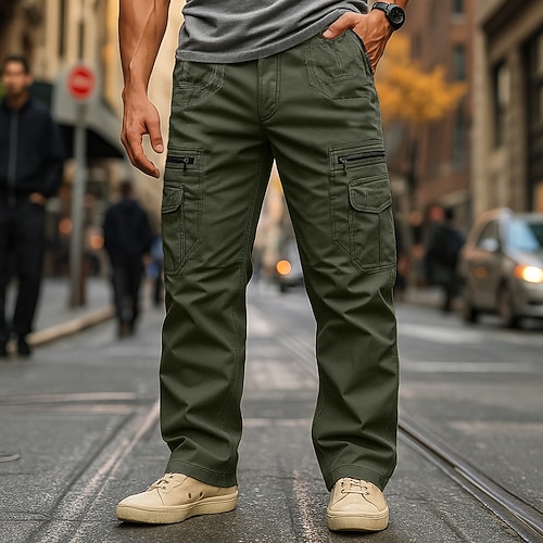 Per uomo Pantaloni cargo Pantaloni Compatto Pantaloni da lavoro Multi tasca Tasca con patta Liscio Lunghezza intera Ufficio Da tutti i giorni Classico Compatto Nero Verde militare
