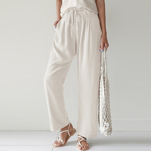 Per donna Finto cotone e lino Pantaloni Eleganti Casual Lunghezza intera Naturale Semplice Elastico in vita Comodo All'aperto Sport Outdoor Streetwear Vinaccia blu navy Grigio Nero Estate