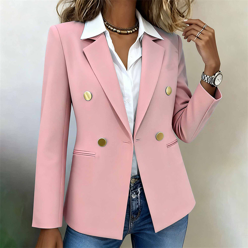 Women's Winter Coat Blazer Warm Comfortable Pocket Buttons Elegant Fashion Daily Classic Solid Color Formal Outdoor Vacation Home Regular Notch Lapel Regular Fit Long Sleeve Outerwear Black White Pink
