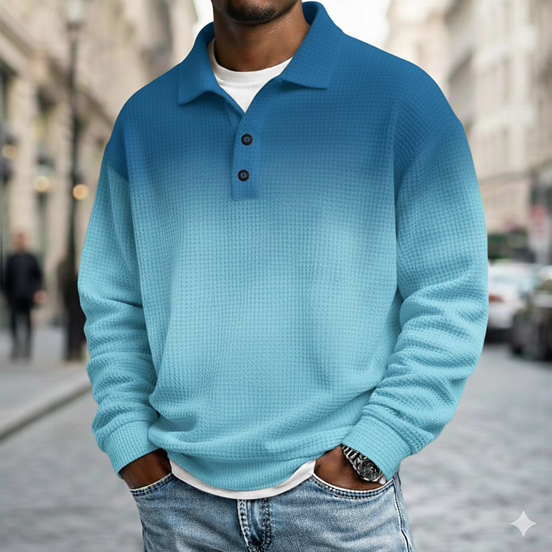 Men's Gradient Ramp Waffle Polo Shirts Long Sleeve Polo Shirts Lapel Sportswear Casual School Athleisure Daily Wear 3D Print Spring Fall Winter Blue Purple Light Blue