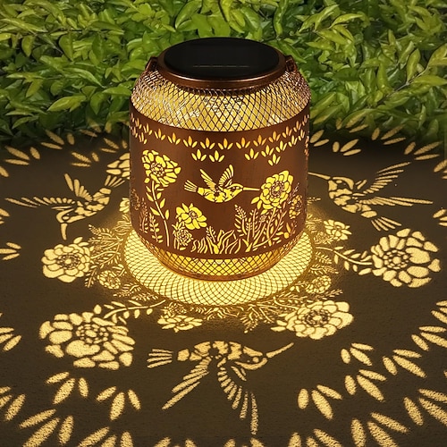 Solarbetriebene Kolibri-Projektionslaterne aus Metall für den Außenbereich, wasserdicht (IP44), dekorative LED-Hängeleuchte für Garten, Terrasse, Hof, Wege, Rasen, Veranda und Feiertage
