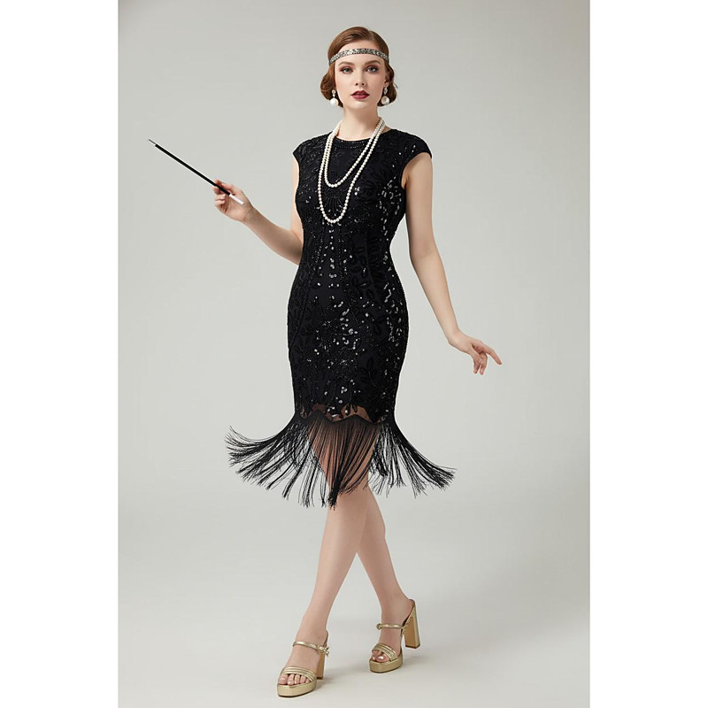 Retro Vintage Roaring 20s 1920s Knee Length Flapper Dress Cap Sleeves The Great Gatsby Sequins Fringe Scoop Neck Fancy Dress Women's Christmas Carnival Masquerade Retro Theme Party Charleston Dance