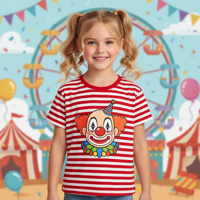 Carnival Costume 2026 Girls' 3D Striped Clown T shirt Tee Short Sleeve 3D Print Summer Spring Sports Fashion Streetwear Kids 4-12 Years Crew Neck Casual Daily Outdoor Regular Fit