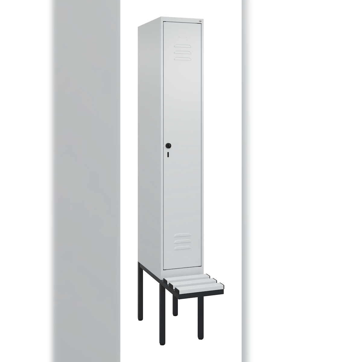 C+P Spind Classic PLUS, Kunststoff schwebende Sitzbank, 1 Abteil, HxBxT 212x30x82cm, Sicherheitsdrehriegel, Hellgrau/Hellgrau von PROREGAL