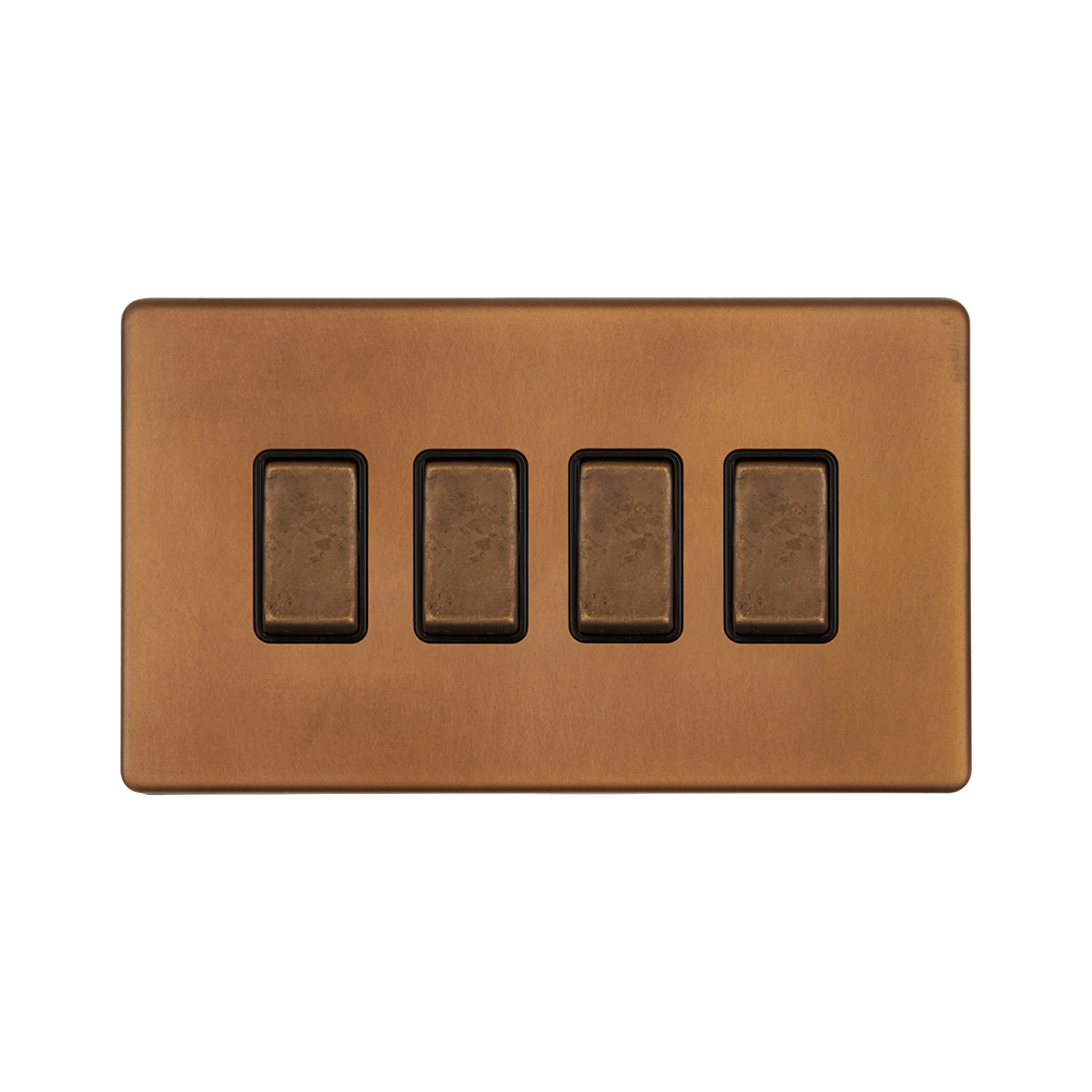 Soho Lighting Antique Copper 4 Gang Switch With 1 Intermediate (3 x 2 Way Switch with 1 Intermediate)