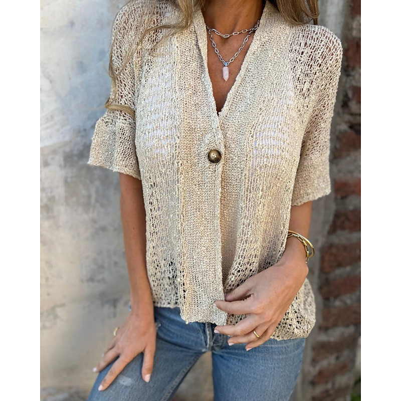 Women's Shirt Blouse Plain Vintage Stylish Short Sleeve V Neck Regular Tops Crop Tops Daily Holiday Going out Eyelet Black White Pink Brown Green Summer Spring