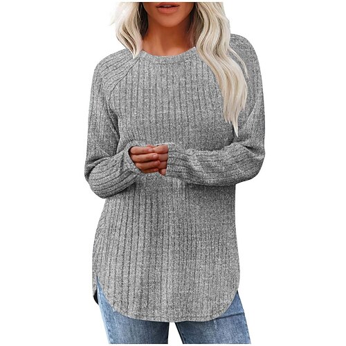 Per donna Maglietta Tinta unica Vintage Elegante Essenziale Manica Lunga Girocollo Top Regolari Quotidiano Nero Bianco Rosa Blu Arancione Autunno Inverno