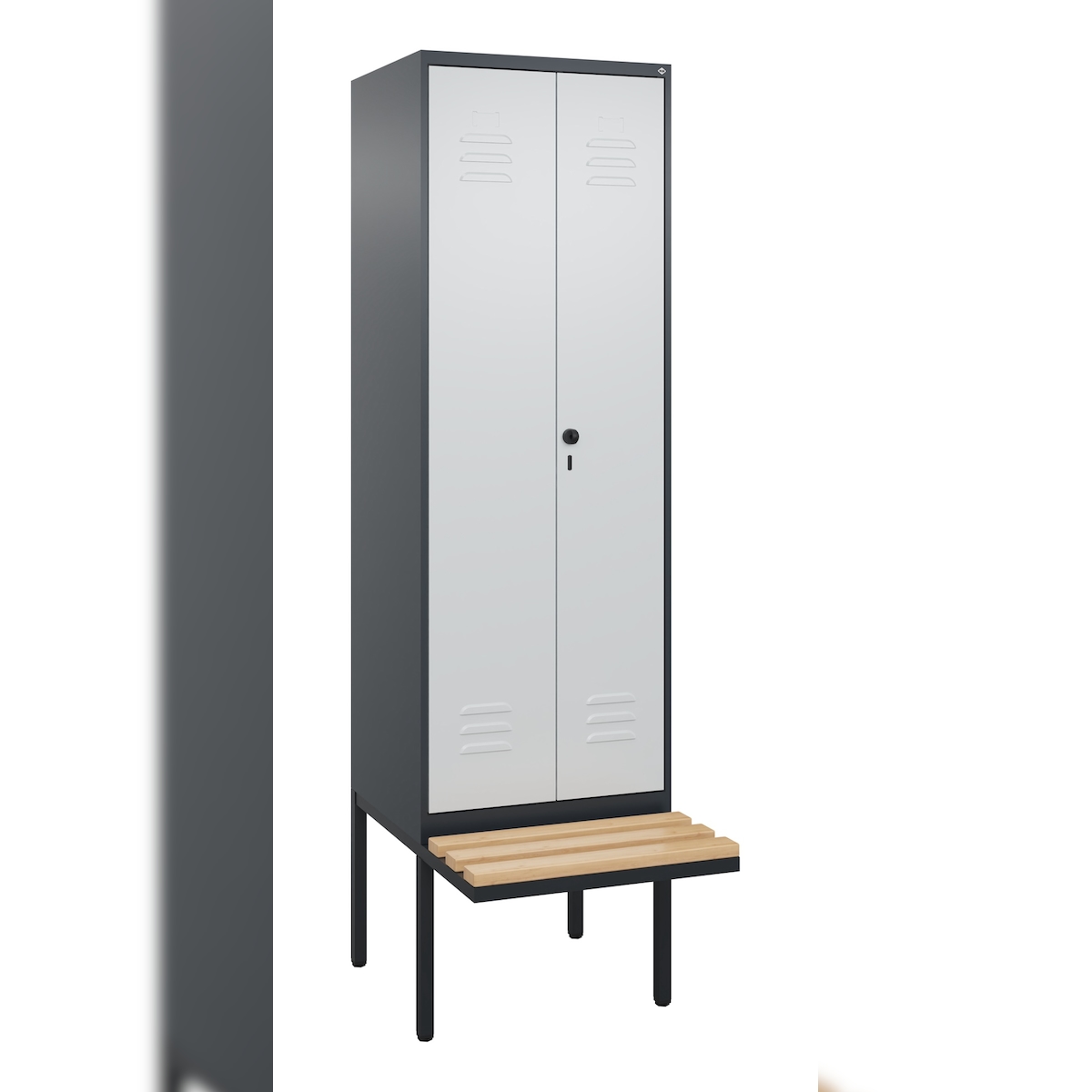 C+P Spind Classic PLUS, schwebender Sitzbank aus Buche 2 Abteile, HxBxT 212x80x82cm, Zylinderschloss, Hellgrau/Resedagrün von PROREGAL