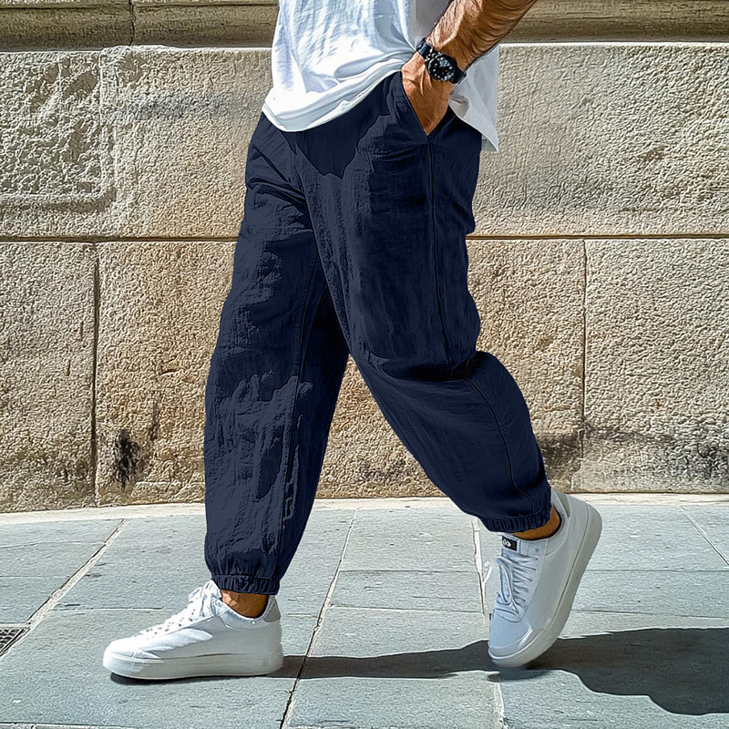 Men's Joggers Linen Pants Trousers Summer Pants Baggy Pants Drawstring Elastic Cuff Plain Comfort Breathable Full Length Daily Streetwear Holiday Vacation Fashion Blue Black Inelastic