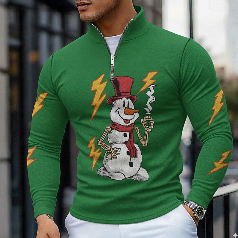 Christmas Men's Snowman Novelty Polo Long Sleeve Polo Shirts Grandad Collar Casual Holiday Daily Wear Festival Outfit 3D Print Quarter Zip Polo Spring Fall Winter Red Green