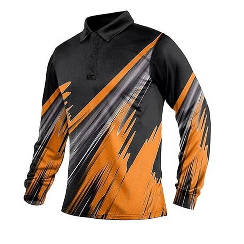 Men's 3D Print Abstract Geometic Polo Long Sleeve Turndown Casual Trendy Street Athleisure Casual Daily Zipper Spring Fall Winter Black Red Brown