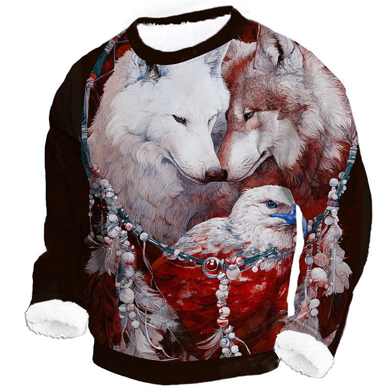 Men's Cartoon Wolf 3D Hoodie Hoodies Sweatshirt Basic Casual Long Sleeve Hooded Black And White Black-White Black Red Summer Spring Designer S M L XL XXL 3XL