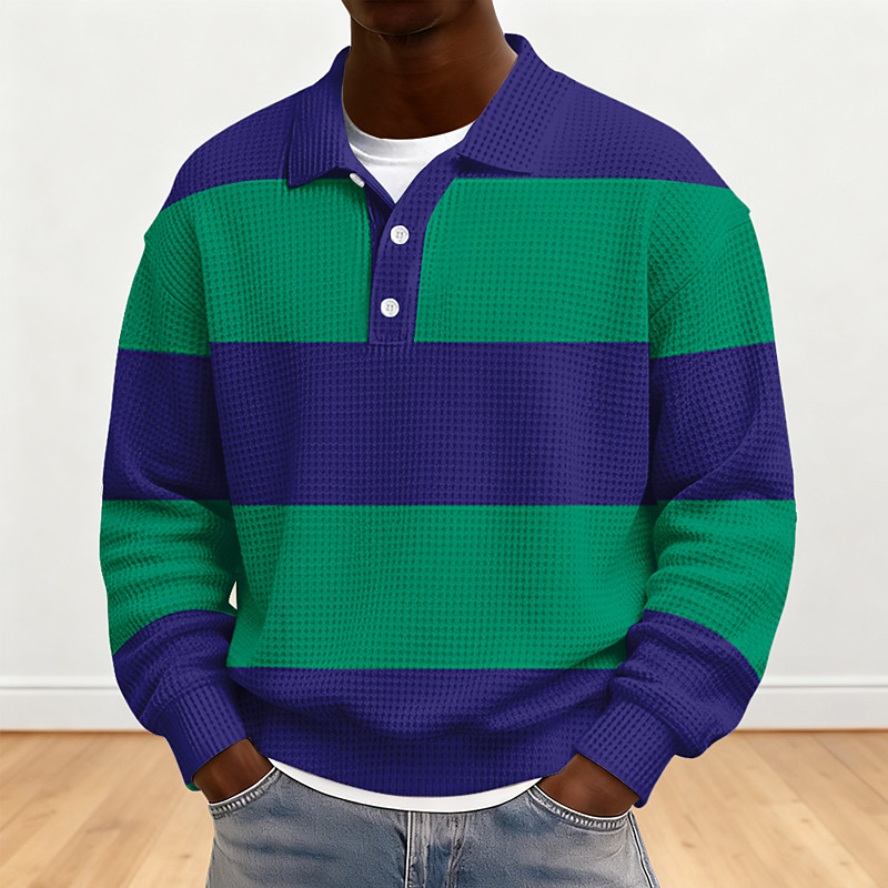 Men's Horizontal Stripes Waffle Polo Shirts Rugby Polo Long Sleeve Polo Shirts Lapel Sportswear Casual School Athleisure Daily Wear 3D Print Spring Fall Winter Blue Red Brown