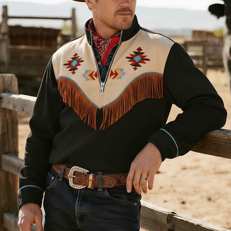 Men's Cowboy Sweatshirt Ethnic Vintage Retro Stand Collar Outdoor Work Gift Blue Burgundy Brown Zipper Fall Winter Designer S M L XL XXL XXXL