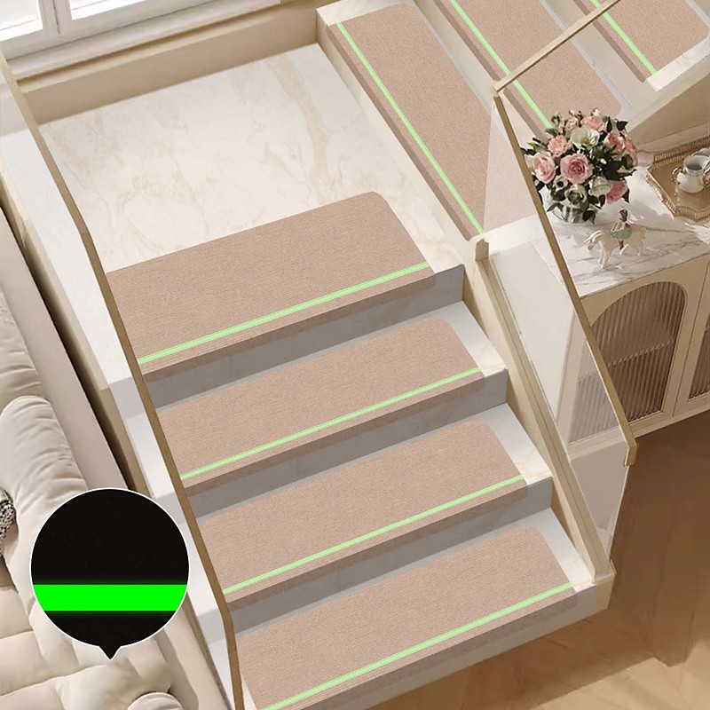 Glow in the Dark TPR Stair Treads, Self-Adhesive Non-Slip Step Mats, No Glue Carpet Pads for Wooden Stairs