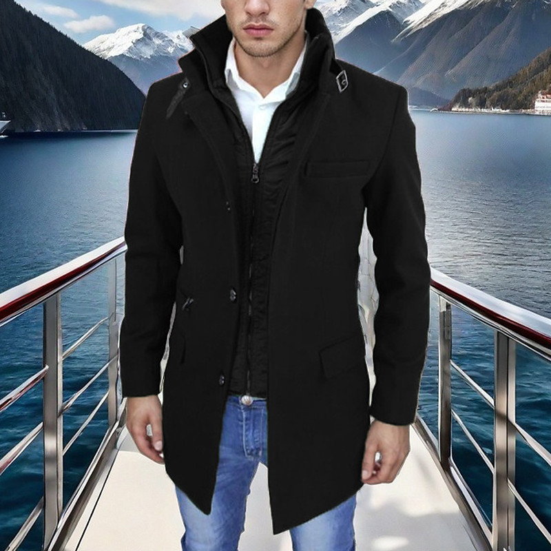 Men's Peacoat Trench Coat Vacation Daily Fall Winter Polyester Windproof Outerwear Clothing Apparel Fashion Classic Plain Pocket Lapel Zipper