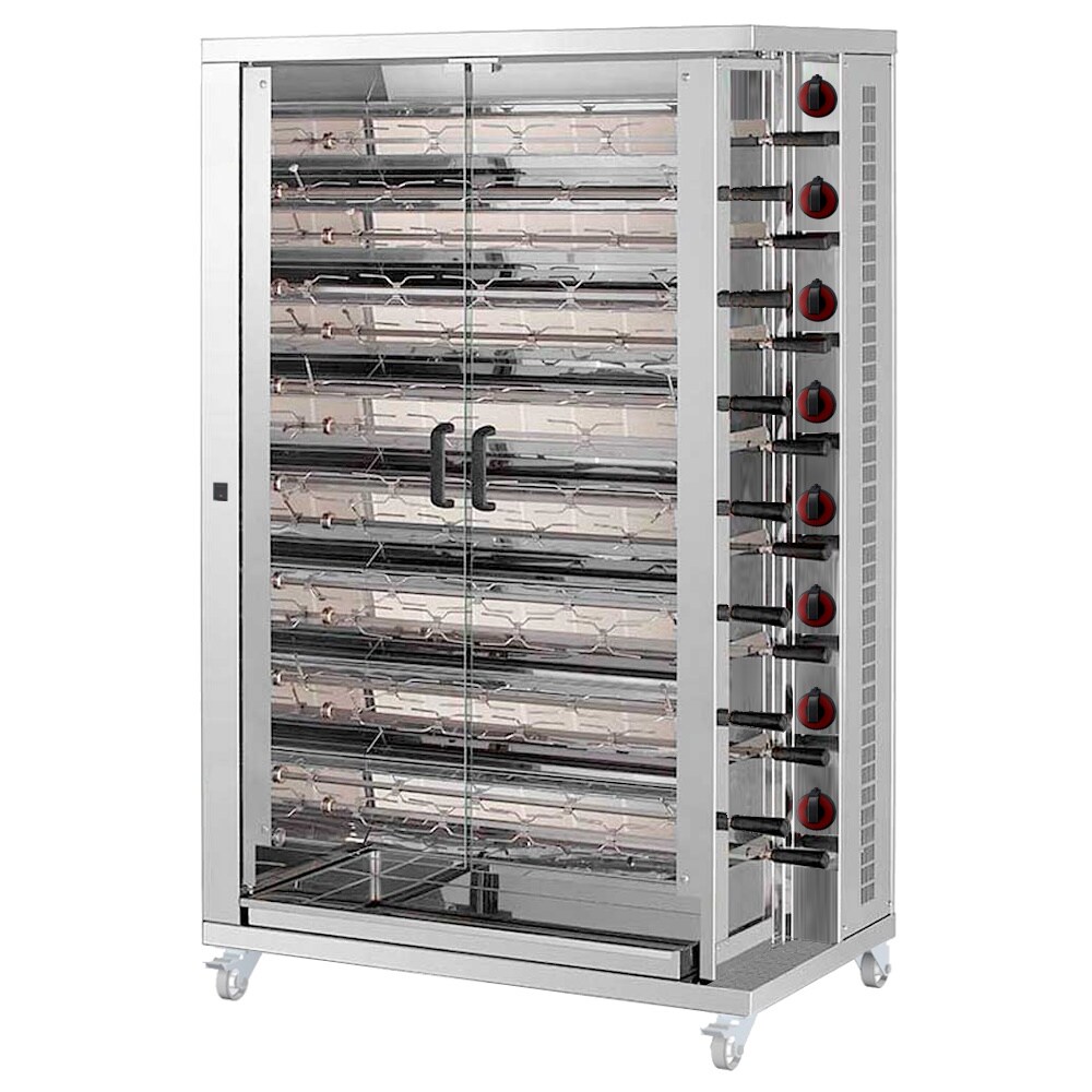 Hähnchengrill mit gas mit licht. 15 schwerter = 75/90 hühner - 1100x610x1800 mm - 56 Kw + 110 W 230/1V - 53750L09 Eurast