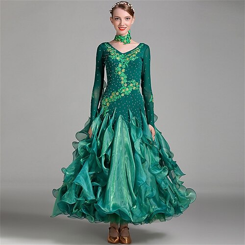 Balli da sala Abito Ricamo A fantasia Cristalli / Strass Per donna Prestazioni Feste Manica lunga Retato Elastene Organza
