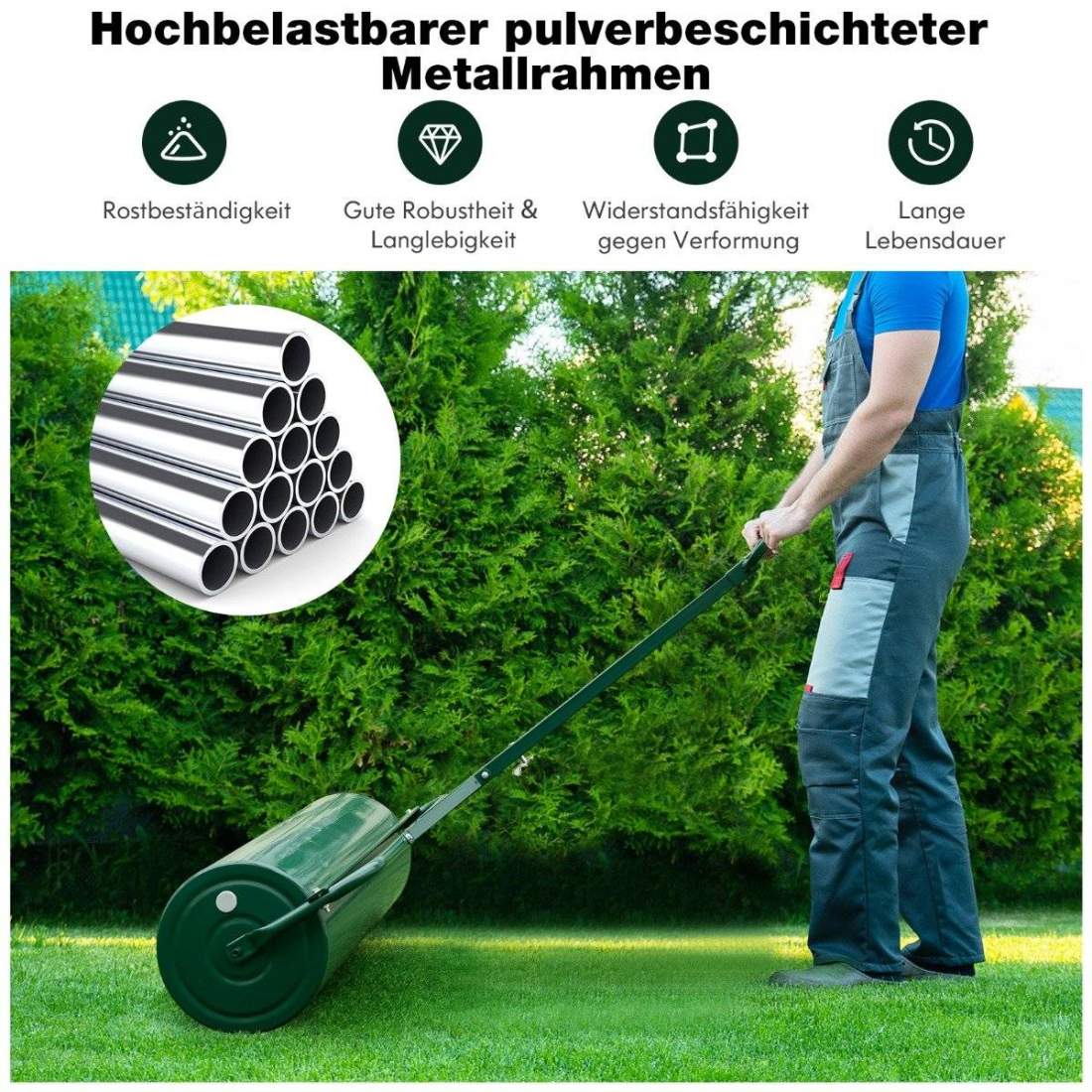 Metalplænerulle, græsrulle til at skubbe eller trække, 99 x 30 x 137 cm, grøn
