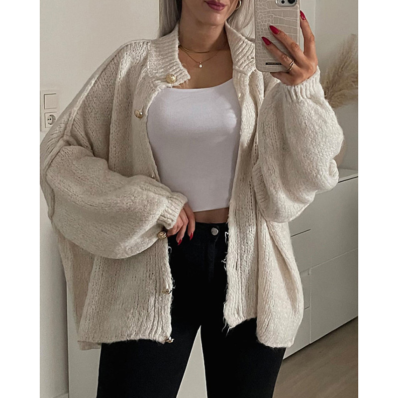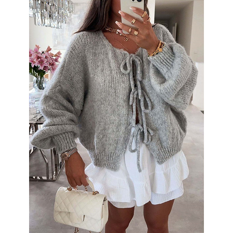 Women's Sweater Cardigan Casual Soft Pure Color Ribbed Crew Neck Knitted Long Sleeve Regular Tops Knit Outdoor Daily Weekend Pink Beige Fall Winter