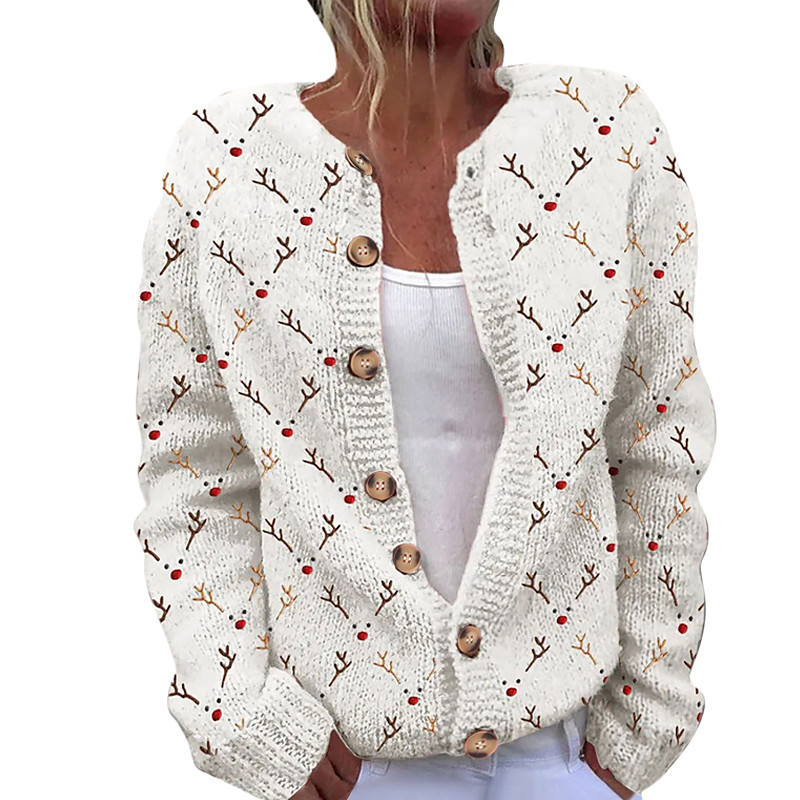 Women's Sweater Cardigan Streetwear Casual Floral Crew Neck V Neck Knitted Print Long Sleeve Regular Tops Knit Daily Holiday Going out White Yellow Fall Winter
