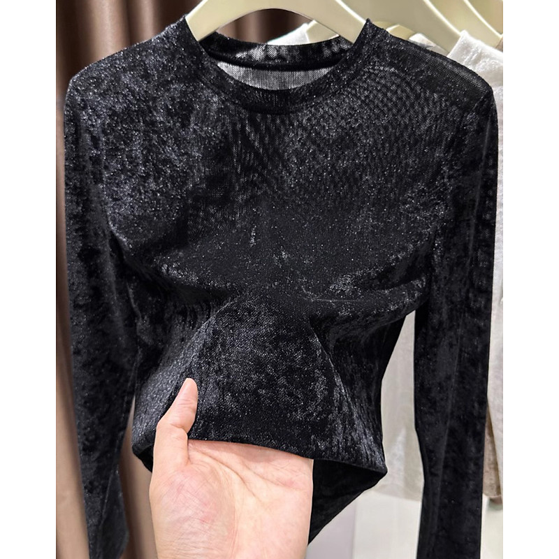 Women's Velvet Elegant Dressy Blouse Plain Elegant Vintage Daily Long Sleeve Crew Neck Regular Tops Daily Holiday Going out Black White Blue Khaki Apricot Spring Fall Winter
