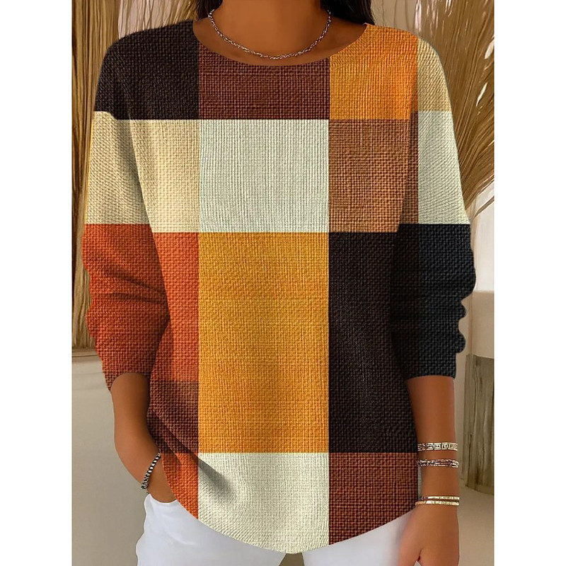 Women's Blouse Plaid Color Block Elegant Vintage Stylish Long Sleeve Crew Neck Regular Tops Daily Holiday Going out Patchwork Black Pink Red Orange Khaki Spring Fall Winter
