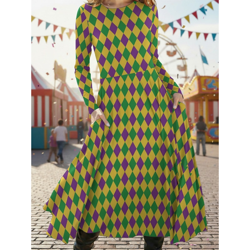 Women's Midi Dress Casual Dress Swing Dress Elegant Fashion Daily Outdoor Weekend Regular Fit Floral Graphic Long Sleeve Crew Neck Blue Yellow Purple Green Spring Fall Winter Autumn