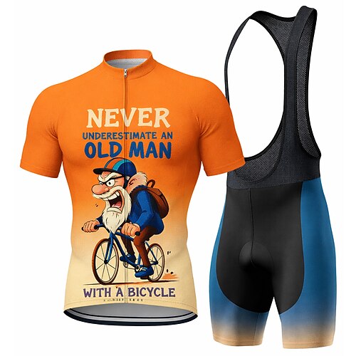 Per uomo Maglia da Ciclismo Maglia da ciclismo con pantaloncini con bretelle Completo da ciclismo Manica Corta Estate Giallo Blu Arancione Cartoni animati Lettere Numeri Bicicletta Protezione