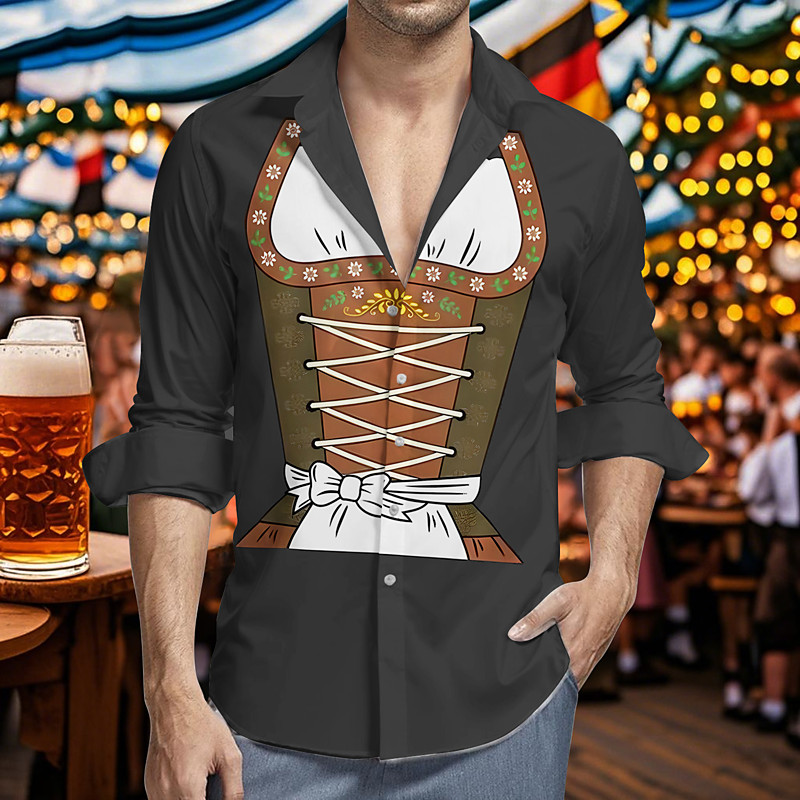 Bavarian Munich German Hawaii Shirts Aloha Shirt Beer Dirndl Print Graphic for Men's Adults' 3D Print for Carnival Oktoberfest Beer Vacation Party