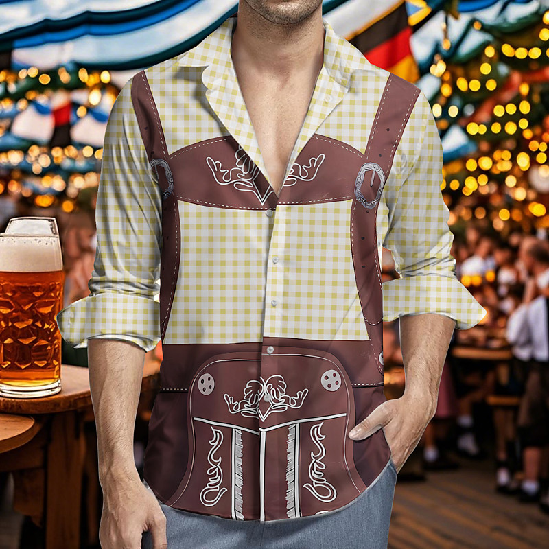 Bavarian Munich German Hawaii Shirts Aloha Shirt Beer Lederhosen Print Graphic for Men's Adults' 3D Print for Carnival Oktoberfest Beer Vacation Party