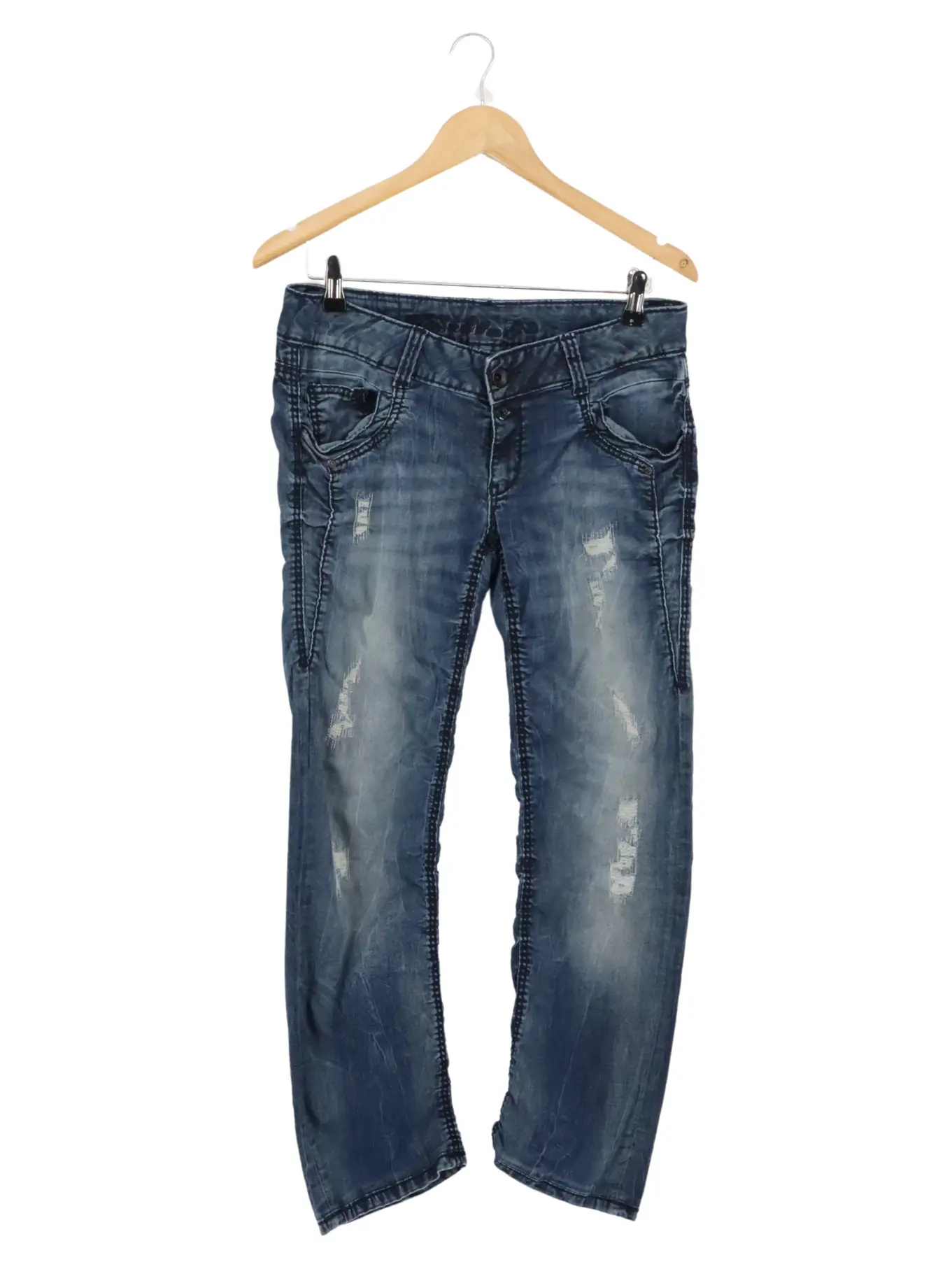 SOCCX Jeans Damen W31 Blau Used-Look Distressed Casual