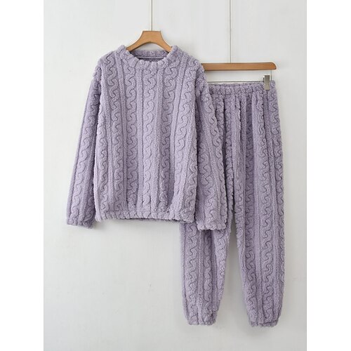 Per donna Set Pigiama Casual Comfort Colore Puro Elastico in vita Pantalone Casa Quotidiano Manica Lunga Girocollo Bianco Rosso Blu marino Viola Cachi Primavera Autunno Inverno Vestibilità comoda