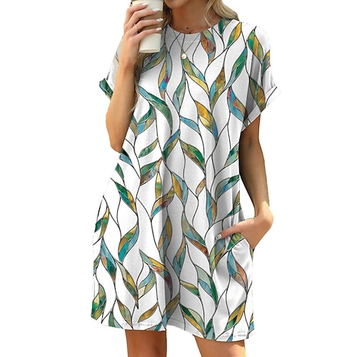 Per donna Mini Abito Vestito T-Shirt Abito a Tubino Vacanza Casual All'aperto Uscire Vestibilità comoda Floreale Foglia Manica Corta Girocollo blu navy Bianco Rosso Verde Estate Primavera