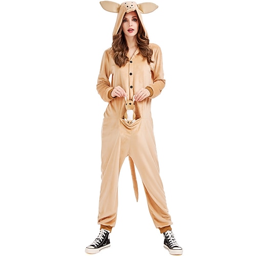 Costume di Carnevale 2026 Fantasia animale Canguro Carnevale Pigiama Kigurumi Costume di fantasia Costume tutina Caldo Carino Con cappuccio Pile Adulti Per uomo Per donna Halloween Carnevale Feste