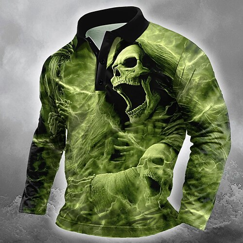 Tag der Toten Herren Schädel Polo Langarm Polo-Shirts Revers Lässig Outdoor Straße Athleisure Alltagskleidung 3D-Druck Knöpfe Frühling Herbst Winter Rote Blau Purpur