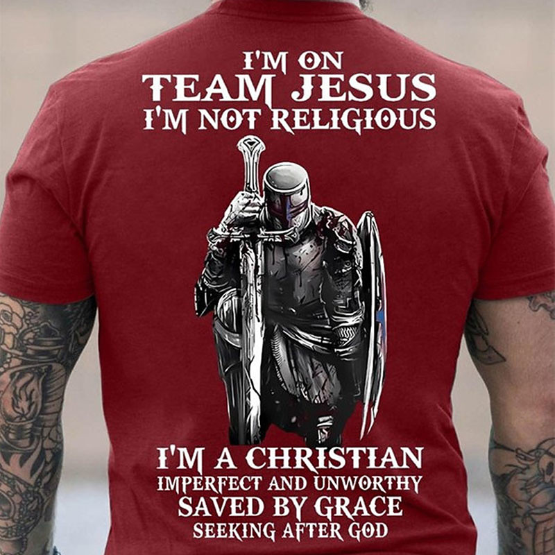 Men's Christian Graphic T-Shirt: Team Jesus, Not Religious, Saved by Grace Knight Tee