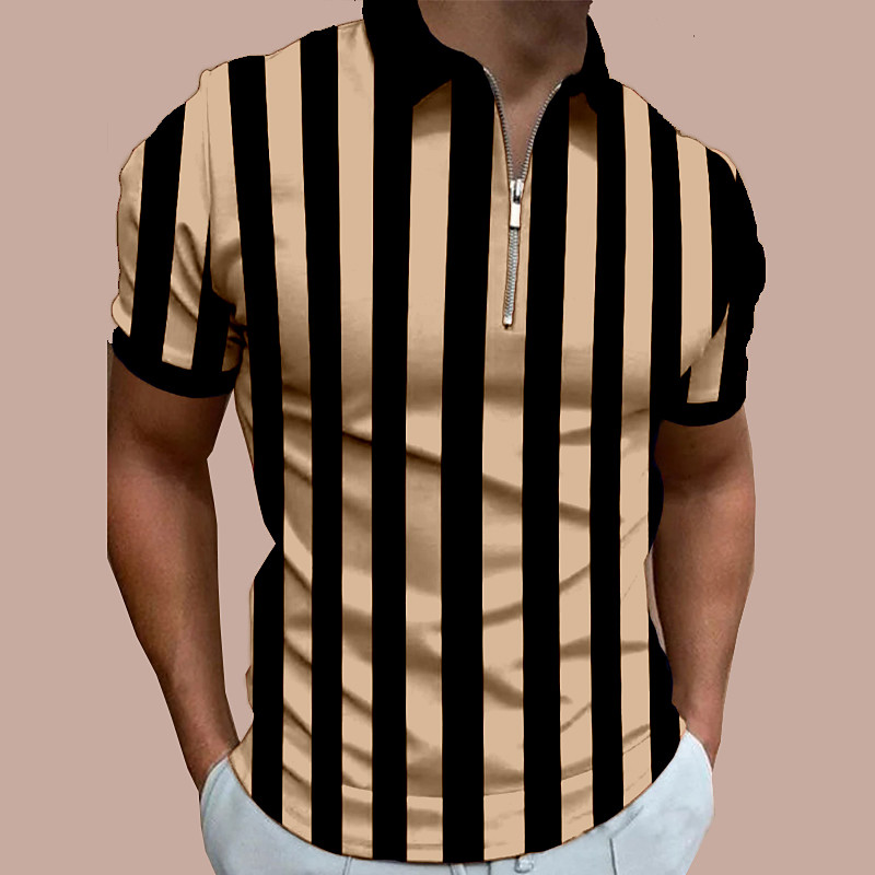Men's Golf Shirt Golf Polo Work Casual Lapel Short Sleeve Basic Modern Color Block Stripes Button Spring Summer Regular Fit Black Navy Blue Brown Green Light Blue Grey Golf Shirt