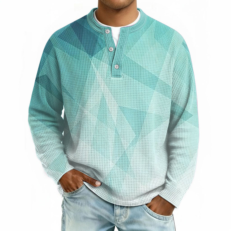 Men's Geometric Color Block Waffle Henley Shirt Casual Style Classic Style Long Sleeve Fashion Designer Basic Casual Daily Outdoor Fall Winter Grey Pink Light Green Light Blue Khaki Henley Henley