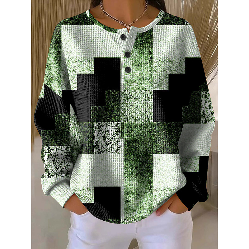 Women's Hoodies Graphic Geometric Color Block Fashion Casual Print Long Sleeve Crew Neck Round Neck Regular Tops Casual Street Buttons Blue Red Purple Green Grey Fall Winter