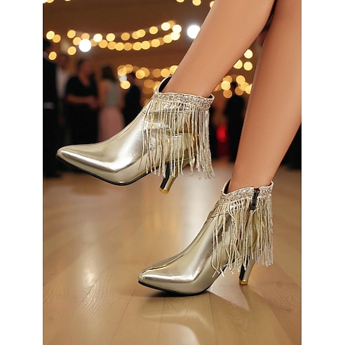 stivaletti da donna con frange rosse metallizzate - stivaletti con tacco a spillo scintillanti per balli, serate e cocktail