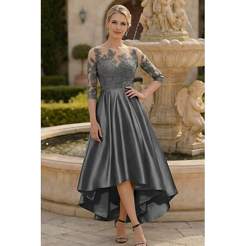 Linea ad A Asimmetrico Lunghezza Tè Vestito da Festa Abito da Cocktail Abito da invitata a nozze Abito da cerimonia per signora Manica 3/4 Scollo Tondo Elegante Alto Basso Ospite di nozze Compleanno