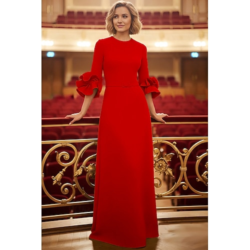 Linea ad A Lunghezza al pavimento Abito da invitata a nozze Abito Formale Abito da sera Abito da cerimonia per signora Manica 3/4 Girocollo Elegante Formale con Volant
