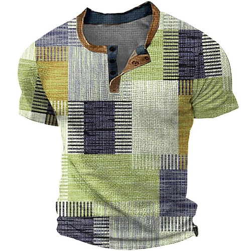 Per uomo Pop art Auto Camicia Henley Manica corta Stampa 3D Di tendenza Originale Comodo Esterno Giornaliero Estate Rosso Blu Azzurro cielo Viola Arancione Henley Maglietta Henley